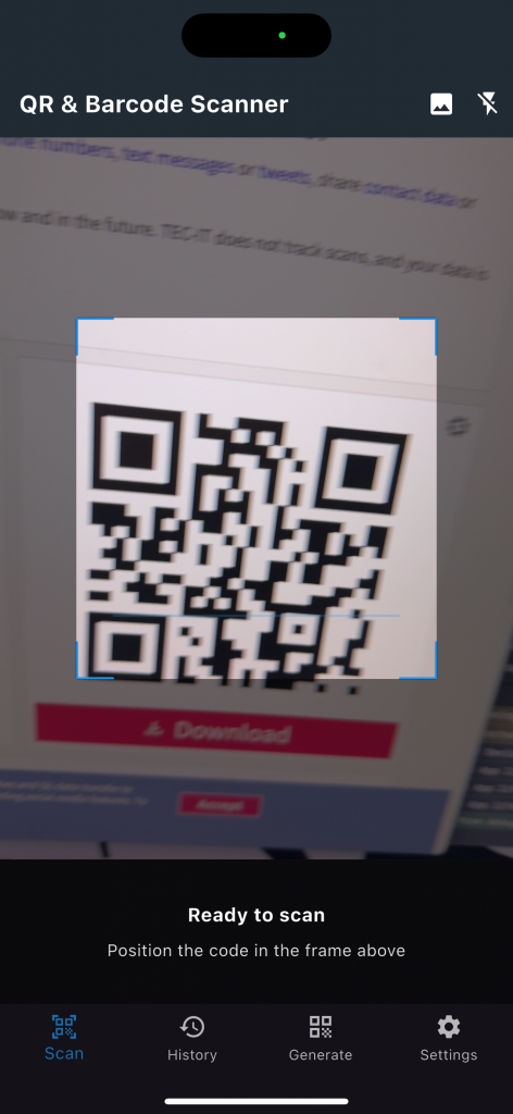That’s it! You don’t have to press any capture button — the app scans automatically as soon as the code is visible and in focus.